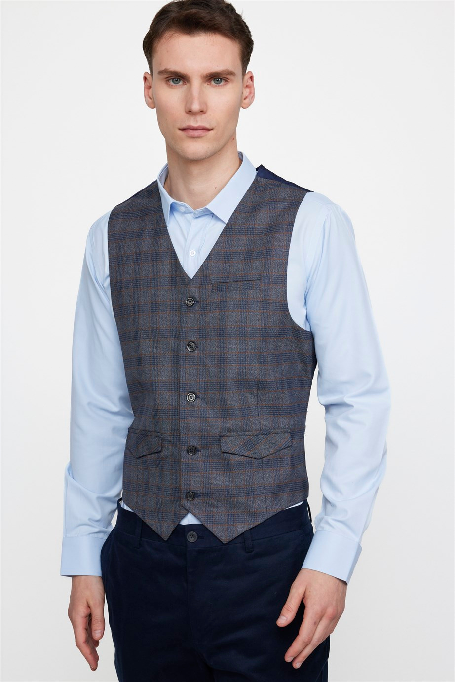 Dar Kesim Düğmeli Çift Cepli Erkek Yelek (YL230007-3500)