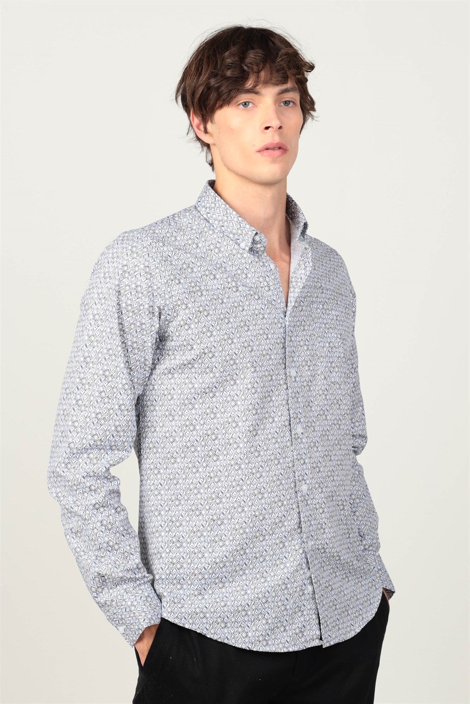 Slim Fit Dar Kesim Desenli Erkek Gömlek